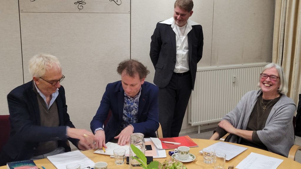 Het tweede bijvak was Liturgie, aan de hand van een artikel van de vroegere Duitse oud-katholieke bisschop en liturgiewetenschapper Sigisbert Kraft. Het artikel bevat de visie van Kraft op oud-katholieke principes bij het herzien en vernieuwen van liturgie. Onze docent Liturgie, dr. Mattijs Ploeger, leidde het gesprek, waarin Marian haar eigen reflecties op die principes gaf. Als rector van het OKS zat Ploeger tevens de bijeenkomst voor.